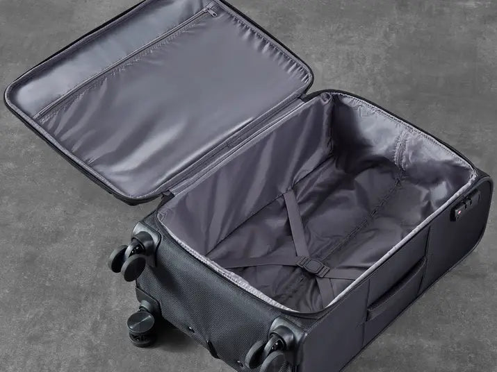 The interior of Vintage has luxurious soft touch lining and a mesh divider section. The design also features a convenient zipped inside pocket and elasticated packing straps to keep your clothes securely in place.